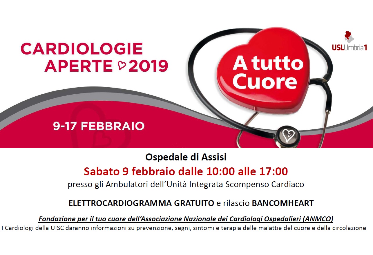 Assisi, 5 febbraio 2019 – In occasione della decima edizione della Campagna Nazionale per il Tuo cuore, per la prevenzione alle malattie cardiovascolari, sabato 9 febbraio dalle 10:00 alle 17:00, gli ambulatori della Cardiologia dell’ospedale di Assisi, apriranno gratuitamente le porte ai cittadini al fine di sensibilizzare la popolazione sul tema della prevenzione cardiovascolare.