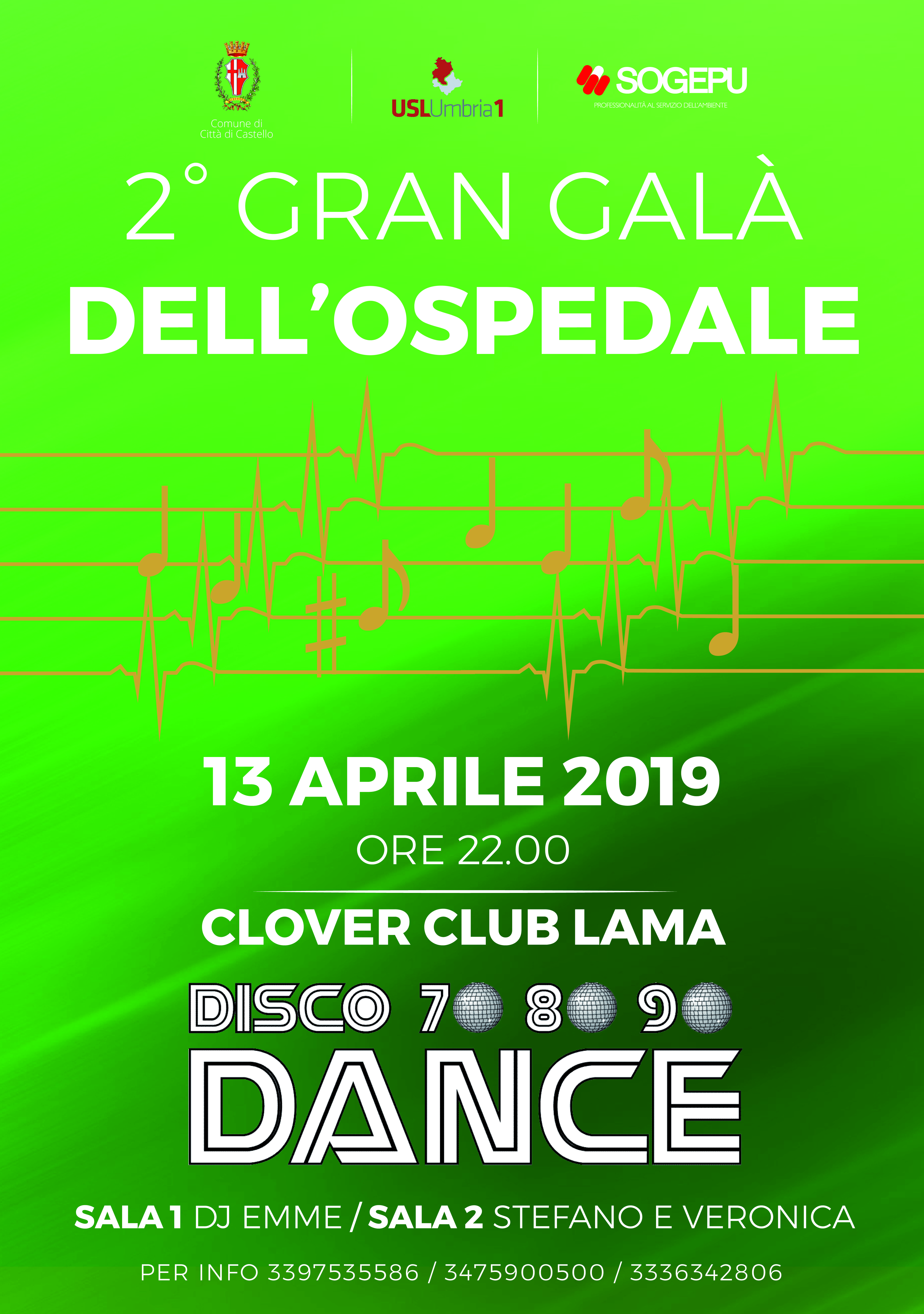 Città di Castello, 09 aprile 2019 – Torna la seconda edizione del Gran Galà dell’Ospedale di Città di Castello che si svolgerà sabato 13 aprile dalle ore 22 presso la discoteca “Clover Club” a Lama di San Giustino. L’evento è organizzato dal Cral dell’Alto Tevere con il patrocinio della Usl Umbria 1, del Comune di Città di Castello e della Sogepu. Per prenotazioni e informazioni contattare i numeri: 339-7535586, 347-5900500 e 333-6342806.