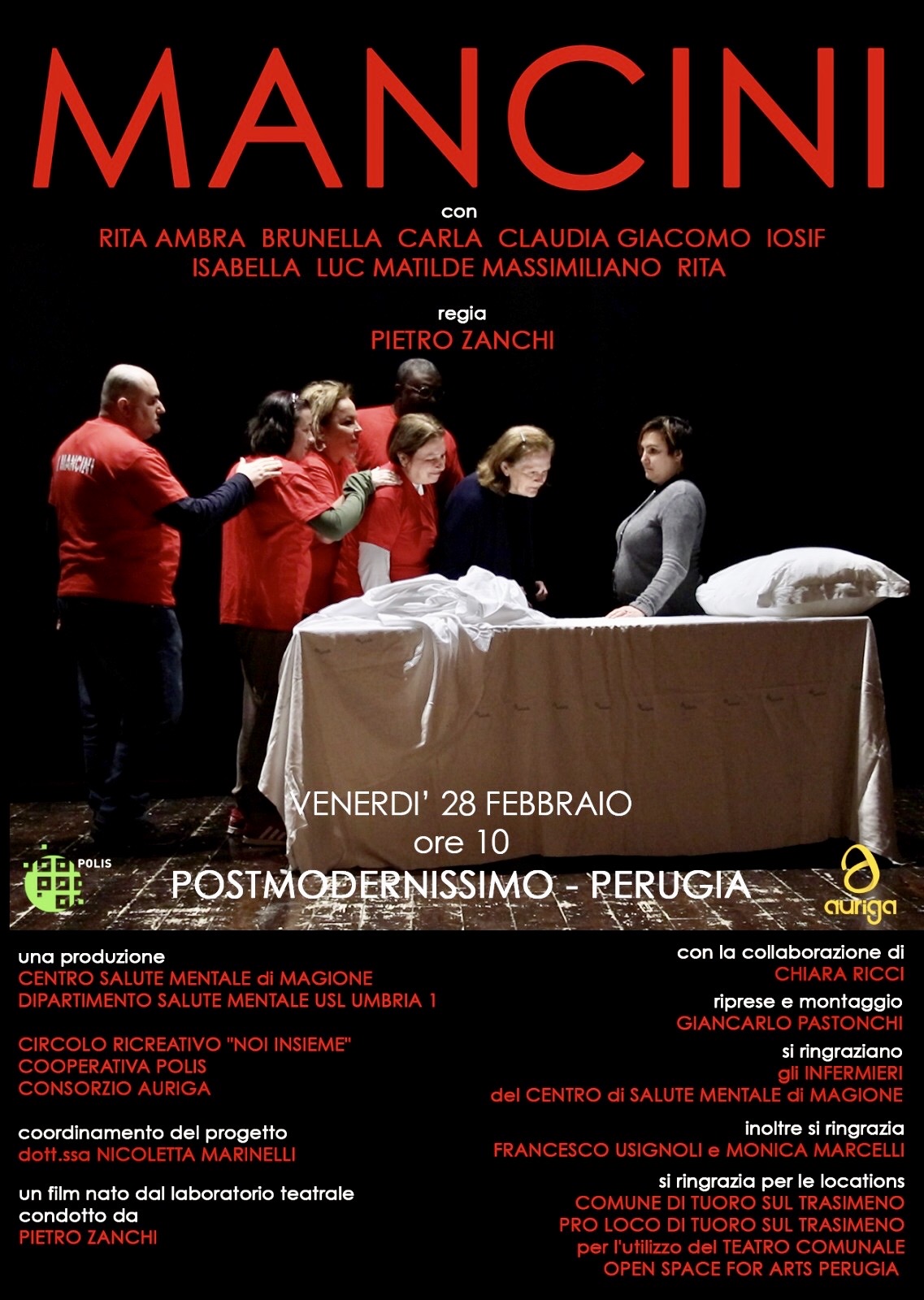 Venerdì 28 febbraio  alle ore 10 al Cinema PostModernissimo di Perugia viene proiettato il film “Mancini”, nato dall’attività teatrale svolta presso il circolo ricreativo “Noi Insieme” del  Centro di Salute Mentale di Magione, per la regia di Pietro Zanchi.