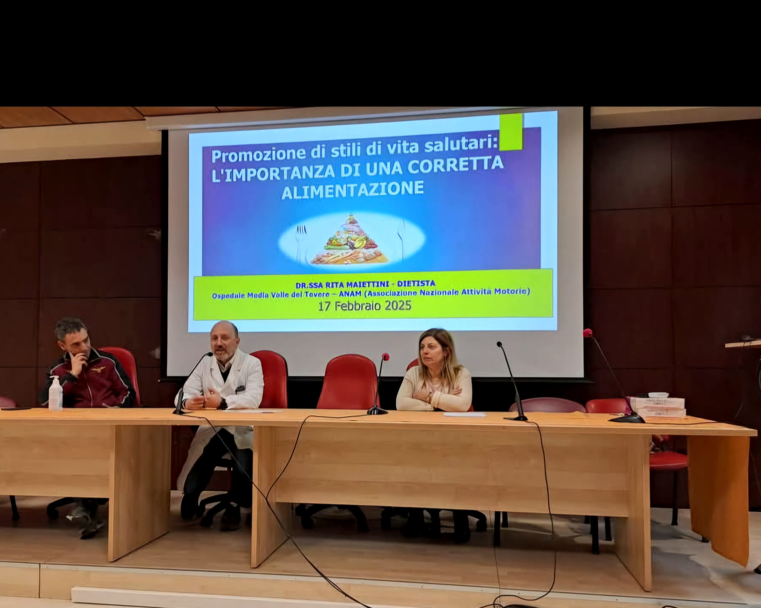 La Dr.ssa Rita Maiettini ha tenuto un incontro presso la sala Dante Coletta dell’Ospedale di Pantalla dal titolo “Promozione di stili di vita: l’importanza di una corretta alimentazione” organizzato in collaborazione tra ANAM (Associazione Nazionale Attività Motoria) e USL Umbria 1 rivolto alla popolazione in generale e agli associati dell’ANAM.